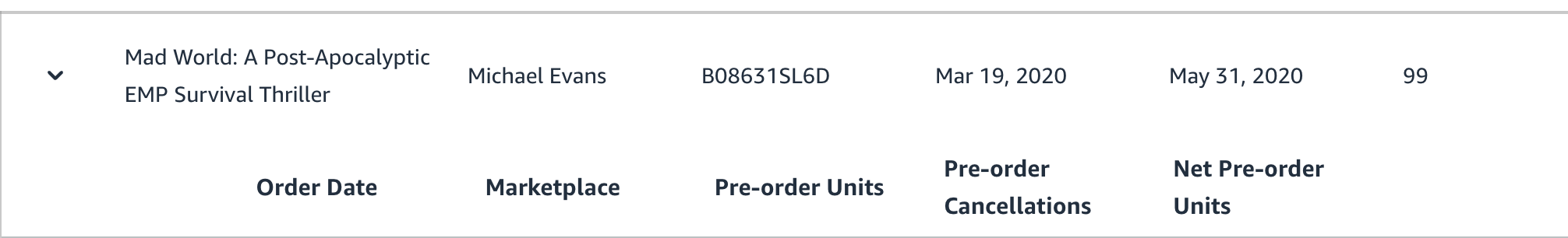 To top it all off, this was my first book ever published in that subgenre (post-apocalyptic survival fiction). Here’s that book’s pre-order inside my Kindle Direct Publishing Dashboard: