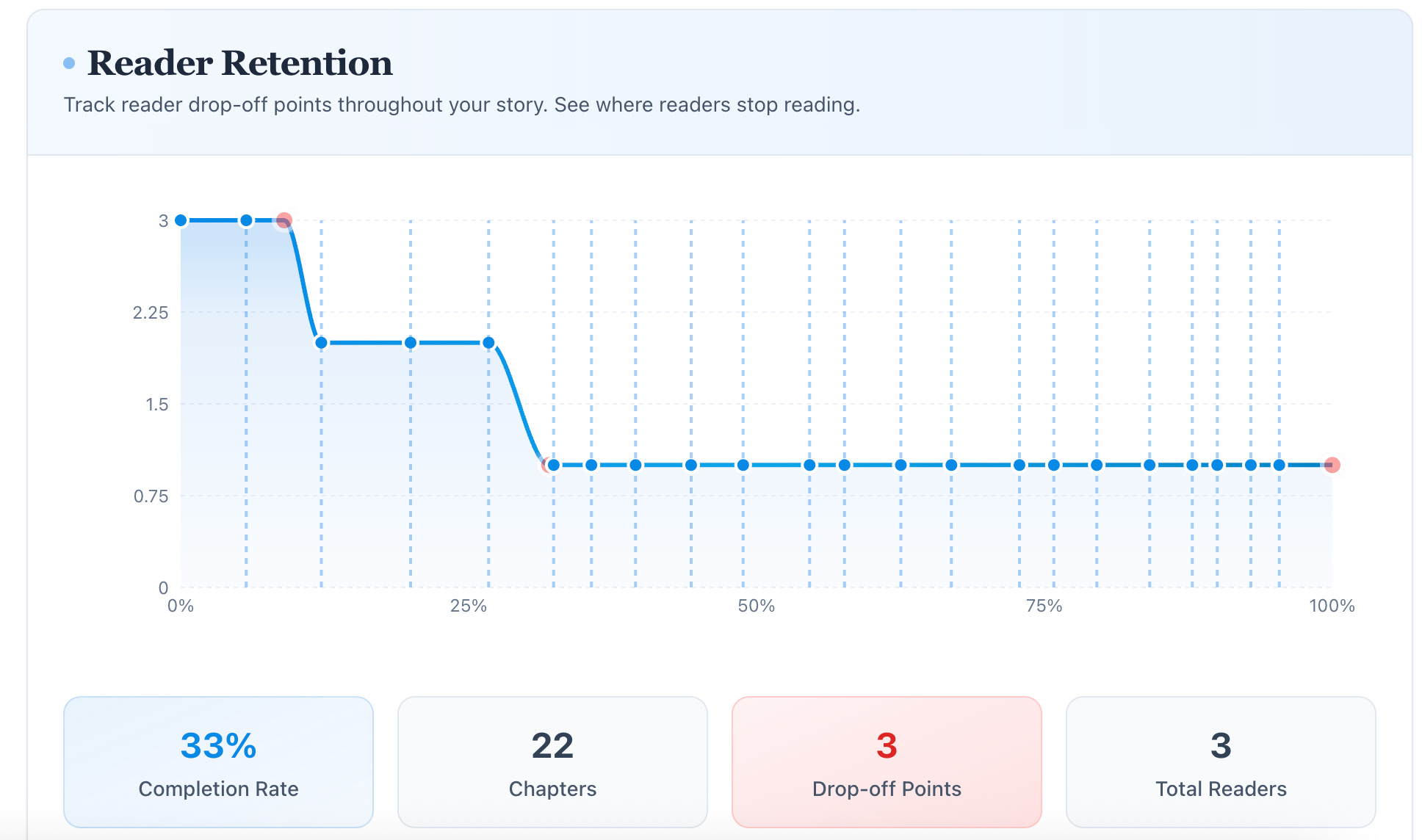 Benchmarking is essential. Retention in a vacuum means nothing, but when you understand how stories of similar length and genre are performing, you can understand if your reader drop-off is normal or not.