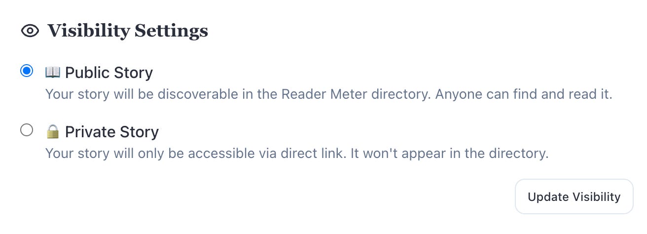 It should be noted any story on Reader Meter can be set to private so that only readers you send the link to can access it.