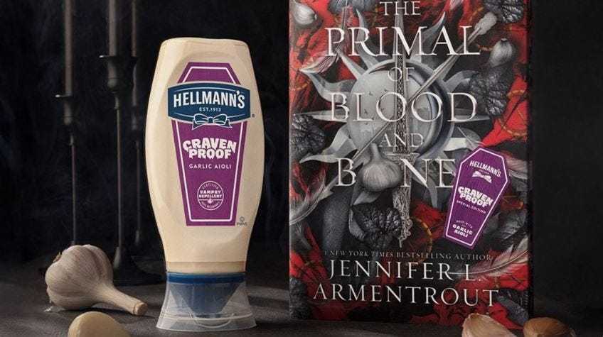 Jennifer L. Armentrout just released, in collaboration with HELLMAN’S, a garlic-scented book. AND Hellmann’s has a new craven-proof garlic aioli (check it out here).
